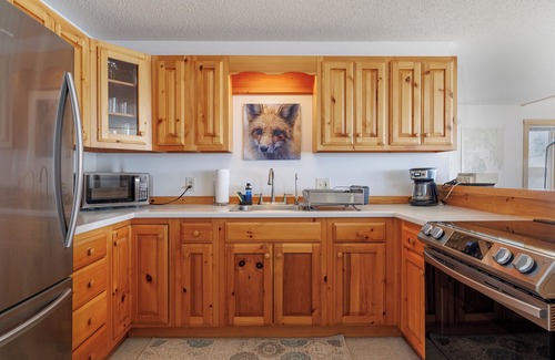 The large deck off the living room allows for outdoor dining and socializing all while enjoying ever-changing tides. Hancock and Gouldsboro have several fine restaurants to enjoy. Ellsworth is just 15 minutes away for shopping and additional dining options. Feel like dining inside? A well-equipped kitchen sits right off the living area. You can whip up your favorite recipes, while enjoying the ocean’s quiet serenity. Enjoy quality time with your loved ones and friends as you dig in.
