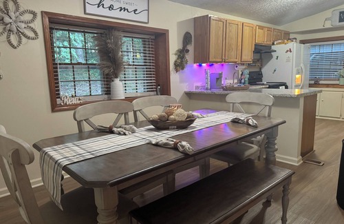 Welcome to our charming Lakeview retreat! This spacious three-bedroom, two-bathroom home offers breathtaking views of the lake from both the porch and living areas. Enjoy stunning sunrises and sunsets right from your doorstep. Located just a short walk from the beach and boat ramp, it’s the perfect spot for those looking to relax by the water or embark on aquatic adventures. Our home is the perfect retreat for outdoor enthusiasts. Whether you're into fishing, duck hunting, or deer hunting, you'll find our location ideal for your adventures. With easy access to prime spots and a comfortable place to relax afterward, it's a great base for making the most of your time in nature. Whether you’re here for a weekend getaway or an extended stay, our home provides the ideal blend of comfort, convenience, and natural beauty. With 1 king bed, 3 queen beds, 1 twin this peaceful retreat offers everything you need for a soothing getaway. Enjoy the convenience of a washing machine, heating, WiFi, AC, and more. Our place will help you feel at home while you're traveling in Camden.