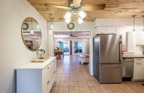 The amenities at the Water View Garden Oasis are designed to ensure your wedding experience is seamless and enjoyable. Featuring three elegantly appointed bedrooms—one king and two queens—this home comfortably accommodates your closest family and friends. The newly renovated kitchen and open-concept living and dining area serve as perfect spaces for pre-wedding preparations or post-celebration gatherings. You will appreciate the outdoor entertainment area complete with a BBQ grill and a large screened-in porch, ideal for celebrating under the stars. Accessibility is a breeze with one-level access and ample parking available for all your guests.