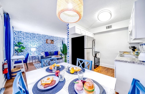 Experience the rejuvenating atmosphere of this recently refurbished apartment, complete with brand new furniture - perfect for your upcoming vacation or business trip. Enjoy the convenience of a fully equipped well-appointed kitchen, equipped with a fridge and freezer, Ninja Blender, Insta-Pot, oven, 4 stove cooktop, dishwasher, coffee station, toaster, cooking utensils, silverware, and dishes We also have an on-site laundry facilities. Situated on the first floor, the apartment is just a short walk from a designated parking spot, with additional guest parking available for those with more than one vehicle.