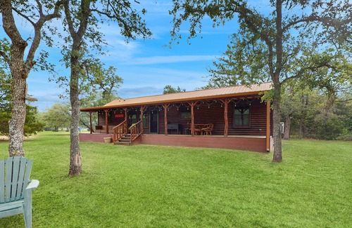 Experience Christmas every day when you book this splendid water-view cabin in the Reindeer Ranch! This home away from home sits on 12 acres and is ideal for a writer's retreat, a couple's getaway, birdwatchers looking for painted buntings, and rock hounds. You are only seven miles away from the antique show at Rummel Square, which is part of Downtown Round Top. The city of Giddings is 11 miles away offering restaurants, a supermarket, and convenience stores.
