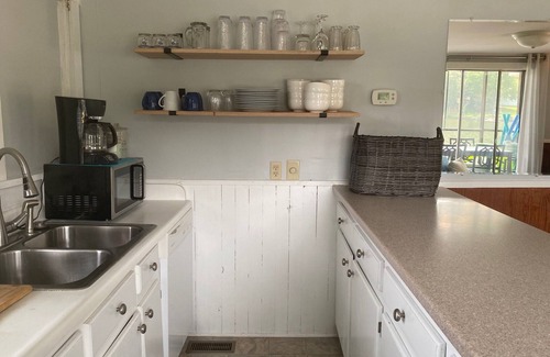 Enjoy lake views from every room! Our cottage faces a cove on one side and open water on another. We have 167 feet of private lake front access with both a floating slip dock and boat ramp. The outdoor areas (including the screened in porch) are directly on the water and offer places to rest and gather when you are not swimming, fishing or sunbathing. This is a very rare find. The home itself is a light-filled 2 bedroom, 2 bathroom retreat built in the 60s. We hope you will plan a visit soon!