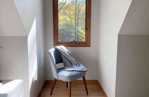 Relax on the front porch of this North Carolina mountain house, near Brevard, with your favorite beverage or book and enjoy the view and soothing sounds of your own private waterfall. Walk down to the waterfall to cool off, wade in the pool at the base of the waterfall, or just sit nearby and take it all in.