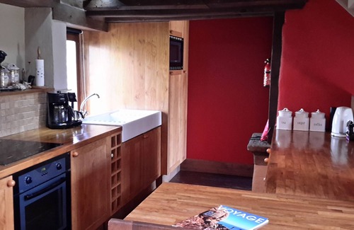 Our circa 18th century restored farmhouse is in a dream location, we are in between Mont Saint Michel, Bayeux and the D Day landing beaches.The birth place of William the Conquerer is the Chateau of Falaise, which is a short scenic journey.We are just 50 minutes from Caen ferry port, and between Conde sur Noireau and Vire, the old fortress town. The house is surrounded by large gardens, fields and pastures, overlooking the hills of Swiss Normandy. The lounge has large windows and doors overlooking the surrounding gardens. The terrace is an ideal place to relax with the smell of lavender and the birds singing and bees buzzing in the spring and summer. In the autumn and winter the lounge is cosy with the wood burning stove. The location is perfect for visiting the many diverse historical and natural sites in Lower Normandy. Although keeping a traditional appearance, the house has wifi and a modern oak fitted kitchen. We have French TV in two of the bedrooms, a British TV in the lounge with a DVD player and a larger one in the breakfast room. There are traditional looking Fire doors to all bedrooms. We also have high chairs and a travel cot for a smaller child.