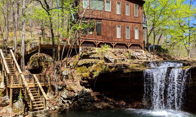Waterfall Wilderness Retreat Bordering the Ozark National Forest | House in Deer