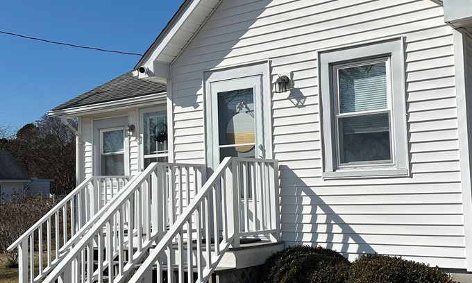 Small family-friendly two bedroom cottage on Chincoteague Island! In a quiet residential area with a slight view of Little Oyster Bay across the street. One mile to Maddox Blvd, and three miles onto Assateague Island. Simple cottage features one queen bedroom assessed via bedroom 2 which is perfect for kids/ teens bunk beds with trundle and living room sleeper sofa. Both bedrooms have doors for privacy.Located in quiet residential area, property is cute & clean, it is a beach cottage not a luxury resort. The view and experience are great and will be enjoyed by couples & families alike! So much to do on Chincoteague from getting back to nature or cruising the island in a golf cart and enjoying many shops and activities. Amenities include very large outside shower, fire pit, outdoor seating, charcoal grill, bikes (waiver required), backyard games and more. Nearby public boat/kayak launch, Fir Landing. Minutes from NASA Wallops Flight Facility. Please reach out with questions. Cottage has Security cameras in front and rear. Contact host for midterm stay deals December through March.