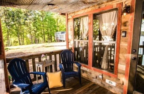 "Enchanting, spectacular, unique, and peaceful. These are just a few words to describe this stunning tiny house glamping cabin. This cabin was designed with 100% reclaimed wood that is over 100 years old. Each piece was specially selected from an old textile factory and a very large barn. The craftsmanship that went into putting every piece into place is simply breathtaking.