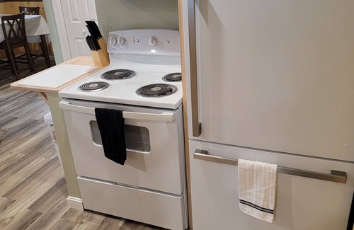 This rental is the 1st floor only of a 2 story house. Rental is a 2 bedroom 1 bathroom unit with laundry full kitchen and living room with a pull out couch. The top floor is owners personal space and is not rented. Owners will not be there when you are so you have the place to yourself. Dog friendly. Access to snowmobile trails from the property.