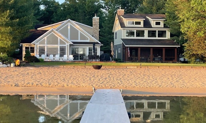 Welcome to one of the most desirable properties on Big Star Lake, a beautiful all-sports lake located in the heart of the Manistee National Forest. This unique rental comfortably sleeps 18 and features two distinct homes with 100 feet of private, sugar sand beach.