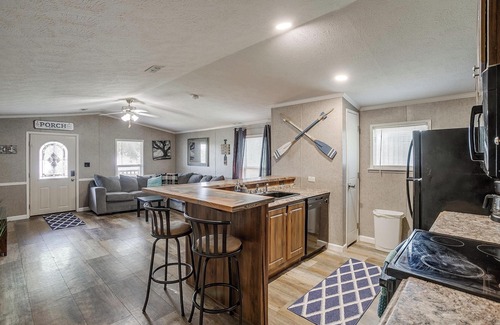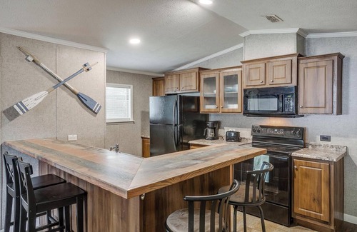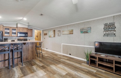 Welcome to the Red Caboose, a cozy waterfront cabin on Lake Granbury, perfect for traveling workers. This 2-bedroom, 2-bathroom cabin features a comfortable living area and a fully stocked kitchen with all the essentials for a convenient stay. Enjoy high-speed WiFi and AC throughout the home to keep you connected and comfortable.