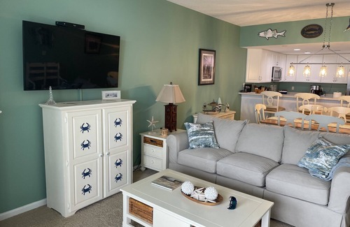 The 3rd floor unit is easily accessed by elevator, sleep comfortably in 3 bedrooms with King, Queen and two twins. The unit is outfitted with 9 foot ceilings, fireplace, equipped gourmet kitchen, desk with internet for remote work, and a jetted tub in the Master suite. The unit is decorated to showcase eastern shore living and watermen. We provide a Pack 'N Play, High Chair, booster seats and more for the little ones.