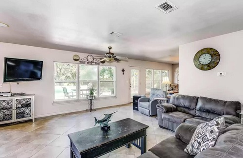 With a HUGE saltwater pool and covered boat slip to sweeten your stay