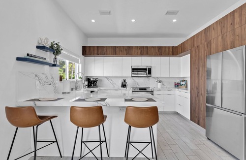 Private, modern coastal home where guests can enjoy the serenity of water views and canal access for boating. This 1,652 sq.ft. home has 4 bedrooms, 3 bathrooms, a spacious living area, and a modern kitchen layout. Guests also have a full-sized washer and dryer available on the second floor. Enjoy your morning coffee on the large balcony overlooking the water. This property offers space to store a boat and has access to a nearby ramp. Unwind on the patio by the fire-pit or the relaxing swings after grilling your fresh catch of the day. Located in a quiet neighborhood near John Pennekamp State Park which offers a beach, exciting water sports, and excursions. If you don't feel likecooking, don'tworry! This property is conveniently located near many local favorites such as Jimmy Johnson's Big Chill and Sundowners.
