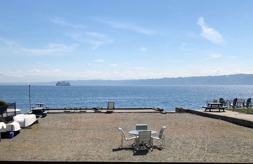 Welcome to our Whidbey Island waterfront cabin! Located on Columbia Beach Drive only ¾ mile south of the Clinton ferry terminal, with the ability to walk to the ferry in just minutes. Its convenient location allows you to explore all the island's activities and attractions nearby. It's a craftsman style bungalow right on the beach with 2 bedrooms and 1 bathroom and it sleeps 5 comfortably. The master bedroom has a queen bed with a spectacular view of the waterfront when you wake up. The second bedroom has full bed below with a twin bunk overhead. Both bedrooms includes dressers and closets with ample storage so you can settle in nicely. The living room is equipped with a new TV and an amazing 180 degree view of Puget Sound, the Cascade mountains with ferries and ships going by. Build a fire outside at sunset, dig clams at low tide, swim and take walks along the beachfront or just chill and relax on your getaway!