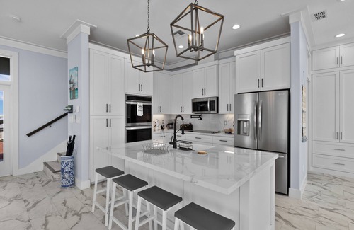 • A fully stocked kitchen with modern appliances, a margarita blender, a spice rack, basic cooking needs and a washer and dryer.