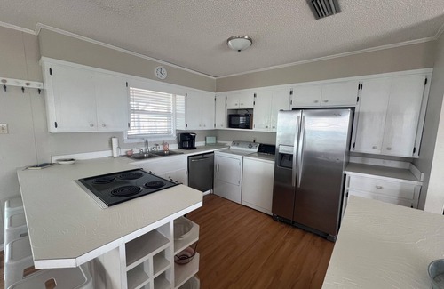 Our home away from home is perfect for family, friends, or just a quiet getaway. It has a fully equipped kitchen, flat screen TV with basic cable and a DVD player in the family room. It has three bedrooms. The first guest room has two twin beds and a full bed, the second bedroom has a queen and a twin bed, and the master bedroom has a king bed with connecting bath. We have linens for every bed with extra pillows and blankets. There are linens in both bathrooms. We also have a washer and dryer for your convenience. It is located on a canal, and has access to two private beaches on the Mississippi Sound. You can reach the ocean one block up the street. There are spacious decks in the front and back of the house with a swing and a charcoal BBQ grill. So pack your bags and come have some fun at the beach