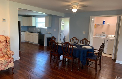 As cute as the two bedroom house with separate trundle bed area is, the crowning jewels of this property are the location next to the park and our own sprawling waterfront backyard. Between the two you can explore the riverfront for quite an extended distance. Plus, you can play ball, throw frisbees, have a picnic, go fishing, follow the cycling paths, walk on the boardwalks, or launch your own kayaks.