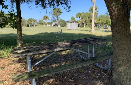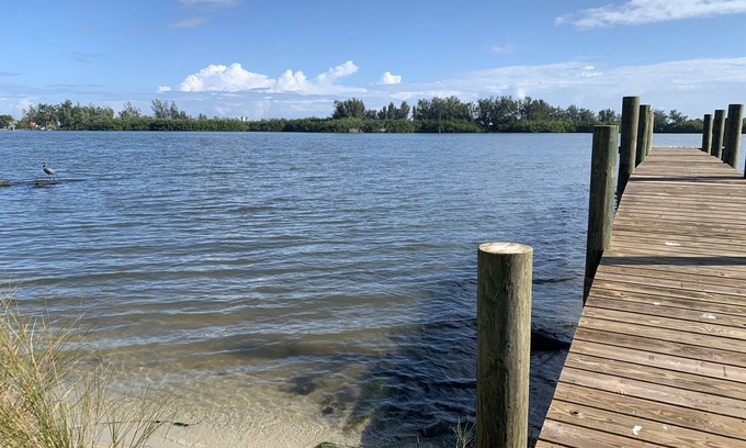 Located directly on the Indian River/Intercoastal Waterway. Gorgeous river views. River access with our own fishing pier. Next to a Community park with pavilion, triple sized charcoal grill, and several other fishing piers (docks). Commune with nature. Serene, quiet and renewing waterfront experience. Set apart. Yet, it’s surprisingly close to restaurants and shopping. Some morning traffic, muffled. There are two patios. One is outside of the Master bedroom. Imagine how lovely to have breakfast or evening cocktails right outside your bedroom sliding glass door. Or wake up to a pretty sunrise. See the birds touching down or dolphins at play.