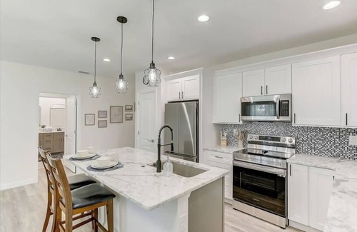 This is a new built water front villa with 3 bedroom 2 bathroom home, about 1320sqft, everything you need for family vacation, work related trips or short gat a way!! With private back yard with new dock on Rotonda River. Enjoy fishing or canoeing and listening to the multiple birds singing. Or relax in the Close by five beautiful beaches closest one is around 6 mi or any other within 20-25 minutes, fishing or enjoying unique Boca Grand island, golfing in any of the five golf courses in Rotonda alone and lots of other things like Ann & Chuck Park pool is within 5 min drive has heated Olympic swimming pools and kids swim section area with water temperature of 82F. Sasy tarts coffee shop and multiple places to eat out are close by. no damages from hurricanes