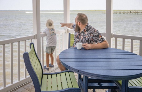 Savor the colorful Chincoteague Island evenings on your private screened-in porch, where you can bask in the gentle sea breeze and soak in the serene surroundings. Our outdoor living spaces provide the ideal backdrop for memorable moments with loved ones, from leisurely breakfasts to evening cocktails under the stars. Did we mention we have the best sunset views on the island?