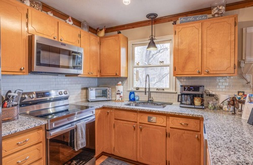 Gas fireplace in the living room and 3-season porch. Air-conditioning/heat throughout. Water softener, microwave, range, toaster, toaster oven, Keurig (coffee included), coffee pot, French press, side-by-side refrigerator and dishwasher for your convenience.