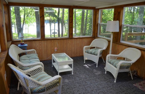 - Private lakefront home with 1,200 feet of sandy beach. A year-round retreat.