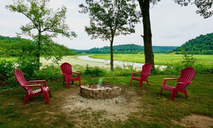 Located in Potosi, this cabin is set in a quiet, rural neighborhood. Take in the beautiful sights of the Platte and Mississippi Rivers while enjoying a relaxing evening around the campfire. Enjoy a cup of coffee on the porch overlooking the Platte River in the morning. This property also offers a bonus space including an extra full kitchen, dining, and living room area.
