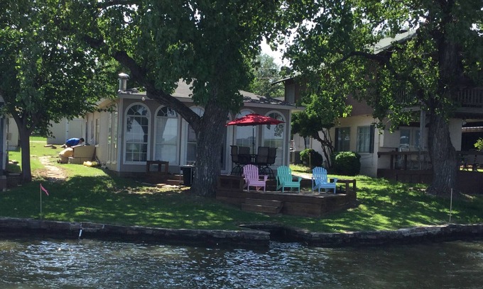 Waterfront Cabin with Boat Dock steps from the deck is located in Graford. Waterfront Cabin with Boat Dock steps from the deck provides accommodation, featuring Parking, Bedding/Linens, Fireplace/Heating, among other amenities. This House features Parking, Bedding/Linens, Fireplace/Heating, to make your stay a comfortable one.