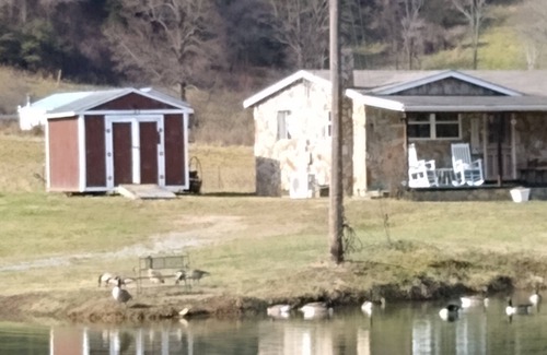Rustic 2 bedroom, 1 bath cabin (560 sq. ft.) beside a working farm. This cabin is surrounded by mountain views. Enjoy the wood burning stove, amble sunlight as well as lush outdoor space with a porch swing, grill and fire pit. This waterfront cabin offers a perfect place to relax by the water or by the fire.