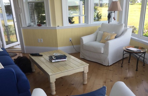 Waterfront in historic Kingsburg, one of Nova Scotia's most beautiful seaside settlements. The custom-built cape on Kingsburg Pond has an open plan, wood floors, and gorgeous sunrises streaming through a wall of windows with water views from every room. See and hear ocean waves from the master bedroom with deck. A 2nd bedroom also overlooks the moonlit pond, meadow, and ocean. Large upstairs bath with shower and soaking tub. The main floor office has 2 sofas and an adjacent full bath. Fireplace, grill, high-speed internet. A short stroll to beautiful Hirtle Beach, Gaff Point Nature Preserve trails, and 18 mins from the historic town of Lunenburg, a designated UNESCO World Heritage site.