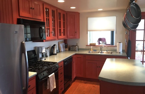 Cook up a Maine lobster dinner in the well equipped, cooks kitchen while the sun shimmers over the bay. The kitchen and dining room are the perfect place for your group to gather after a day of Maine fun. A gas range, dishwasher, RO water filtration system, coffee maker and grinder, toaster, Henkel knives, ice cream maker, waffle iron and lobster pot are all the tools you will need for your gourmet meal. Spices and basic pantry supplies are also there for your convenience. There is a gas grill located outside.