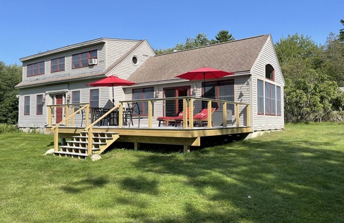 Relax in the sunroom surrounded by the views of Hockomock Bay, the sweeping lawns and the Maine forest. Step out on to the sizable deck to enjoy your coffee as the morning sun peeks through the tall pines while you watch the loon sun themselves on the rocks in the bay. Open the windows and feel the cool shore breezes blow in while you relax in the recliner and read a good book. The large room is perfect for relaxing, meditation, yoga or birdwatching. If the weather is chilly you can light the gas stove, sit around the coffee table and play games while enjoying an incredible sunset.