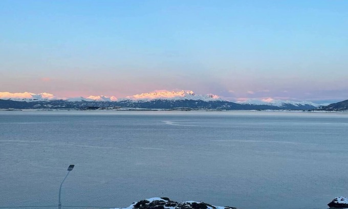 Condo with a beautiful view of the Beagle Canal, Darwin Mountain Range, and the city. About 10 minutes from the city center by car, with a bus stop close by. It is walking distance to Playa Larga and close to the city entrance.
