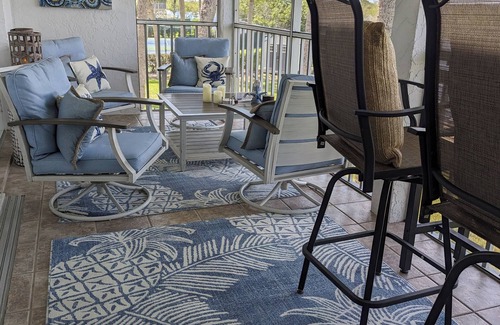 2 bed, 2 bath freshly renovated coastal style, beautifully furnished. Kayak, fish, lounge by 1 of 2 pools, play tennis or pickleball~ all available right outside your door. One of the pools is covered and one is open with an additional deck for sunning.