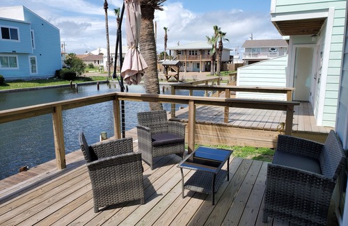 Located just minutes from Rockport beach, with the ocean and a dedicated spot to moor your boat directly outside your backdoor. The home has everything you need to make the most of your stay in Rockport, whether a romantic weekend getaway, a fishing trip with friends, or a weeklong trip for the whole family. Enjoy a sunrise on the top deck, Netflix on 3 HDTVs, swimming or grilling at the community pool or have drinks on the shaded lower deck in the afternoon.