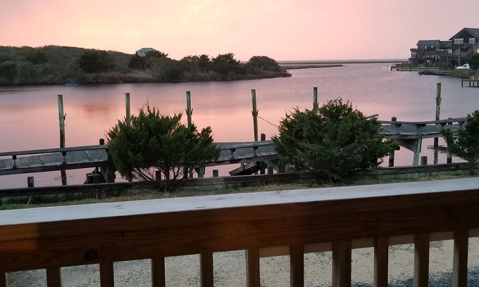 "Mariner's Terrace" is a soundfront condo with the most amazing sunset views across the sound from a covered deck. Just a 5-minute walk to the beach. 1 BR condo (check sleeping options below) with full well-stocked kitchen and full bath and an additional private seasonal outside shower. Walkable to restaurants, ice cream, bar, and shopping. Just 1 mile from Avon Pier.