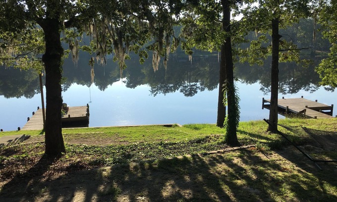 If you are an early riser, you'll enjoy the sunrises from the screened-in porch overlooking the lake. In the afternoon, you'll relax on the dock in the shade of the oak trees sipping on your favorite beverage and enjoying the sights and sounds of nature.