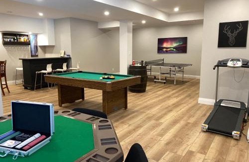 31 miles from Muskoka Heritage Place - Museum, Village, Train in Sprucedale, Waterfront cottage with hot tub & private beach in Muskokas offers accommodations with access to a fitness room. This beachfront property offers access to a patio, a pool table, free private parking, and free Wifi. The vacation home has an outdoor fireplace and a hot tub. Featuring a terrace and lake views, the spacious vacation home includes 6 bedrooms, 3 living rooms, flat-screen TV, an equipped kitchen, and 3 bathrooms with a hot tub and a bath. Featuring air conditioning, this unit has a dressing room and a fireplace. The vacation home offers bed linen, towels, and laundry service. There is an on-site bar. For guests with children, the vacation home features an indoor play area, outdoor play equipment, and a baby safety gate. Skiing and fishing can be enjoyed nearby, while a ski equipment rental service, a private beach area and water sports facilities, are also available on-site. North Bay/Jack Garland Airport is 68 miles from the property.
