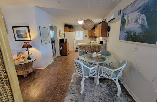 This Florida cottage is a converted shrimp house. The decor is tropical with tile floors and ceiling fans. This 1 bedroom, 1 bathroom (shower, no tub) air conditioned cottage is well -furnished and sleeps only 2.