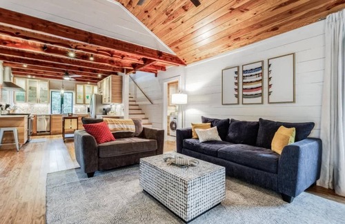 The home includes two cozy bedrooms, each designed for relaxation and comfort. The primary bedroom boasts a king-size bed and an en-suite bathroom, providing a private retreat. The second bedroom is upstairs and equally comfortable, ideal for guests or children, and has easy access to the second full bathroom. There's also a deck off the 2nd bedroom with lake and hill country views!