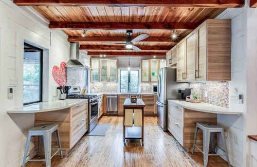 Waterfront, Custom, and Eclectic home on the Lake! is located in Burnet. Waterfront, Custom, and Eclectic home on the Lake! provides accommodation, featuring Bedding/Linens, Fireplace/Heating, Kitchen, among other amenities. This House features Bedding/Linens, Fireplace/Heating, Kitchen, to make your stay a comfortable one.