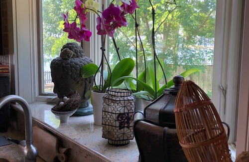 Enjoy water views from this 4 bedroom (potential 5th guest bedroom) 3 1/2 bath property set in the heart of Salem, Massachusetts, on a quiet, dead end street. An open floor plan with a chef's kitchen, dining table that seats 10 plus, and many seating areas, indoors and out, with a wrap around deck. The house has three floors, the main floor has two offices well equipped for remote work, with an open kitchen, dining and living area. The second floor has a bedroom with water views and a bath. In addition, the master suite on the second floor has an expansive deck on the harbor and a spa bathroom where you can track the boats and view the sunrise or the warm sunset lit harbor right from your bathtub. A separate laundry room and a spare room for guests or a den complete the second floor. The third floor has a very large bedroom with couches and harbor views, a bathroom and an additional bedroom.
