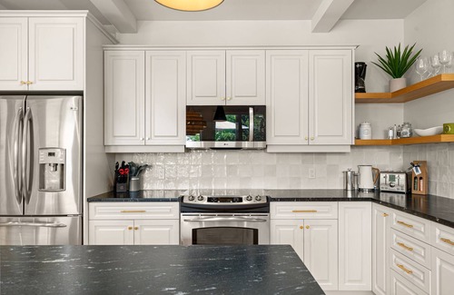 • Fully stocked kitchen (pots, pans, basic spices, oil, knives, etc)