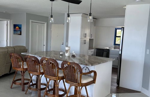 Relaxing in the lanai, looking over the crystal clear pool, watching for dolphins . Fishing off the dock. Enjoying the warm pool. Kitchen is the center of two wings of the home.. your gonna love ❤️ it here