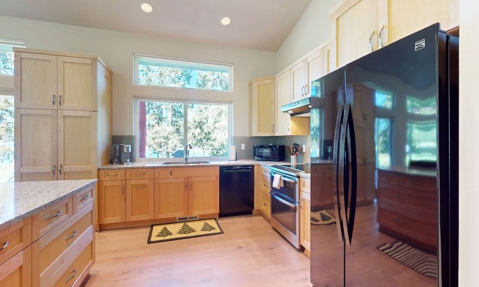 With modern amenities like central air-conditioning, a washer/dryer, and a well-equipped kitchen, including a dishwasher and coffee maker, this home ensures a comfortable and convenient stay. This single-level house boasts a wheelchair-accessible layout with step-free access throughout and a roll-in shower with a chair, making it ideal for guests of all abilities. Whether seeking a quiet retreat or a family-friendly getaway, this Longbranch home has everything you need for a memorable vacation.