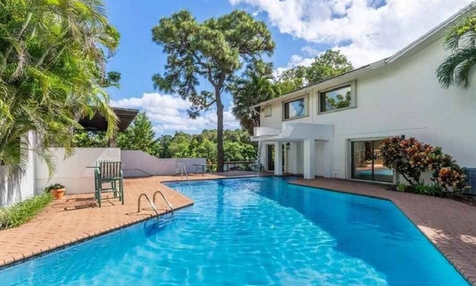 This Waterfront Estate offers water views from almost every room in the home. Come & live like royalty in this huge home. From its oversized rooms & pool to the game/party room... Stay at one of the most unique and private estates in South Florida. Ensuite bedrooms with TVs & private bathrooms. Lining the banks are boats and yachts of all sizes. This is the aptly named Sailboat Bend neighborhood, a haven for boat enthusiasts. Book now & embark on a journey of indulgence and relaxation.