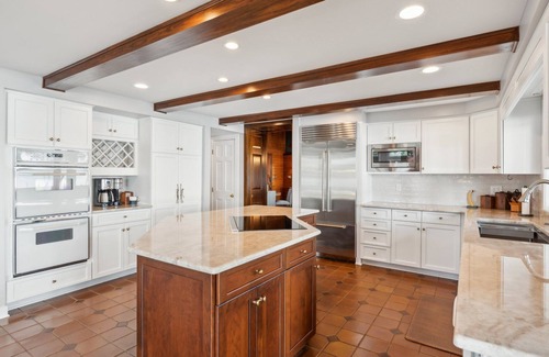On the other side of the home, just past the dining room, there is a chef’s dream kitchen with a state-of-the-art cooktop stove, under-counter ice maker, large refrigerator, and double wall ovens. Moving through the kitchen, there is a half-bath down the hall just off the kitchen, the laundry room, and stairs to the second level. On the second level of the home, there is a loft space perfect for curling up with a good book, the second bedroom with a king size bed, and the third bedroom with a queen size bed.