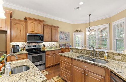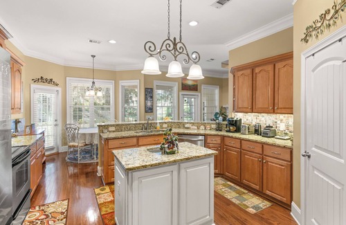The Italian-themed kitchen is fully stocked with everything a gourmet chef needs to whip up a meal. You have a formal dining table + small breakfast table.