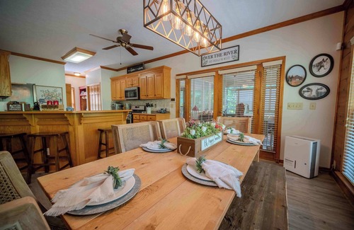 HOME FEATURES: Washer & dryer, 4 Smart TVs, fireplace, dining table, deck, gas grill, multi game table (air hockey, pool table, ping pong combo), Playstation game console, board games, puzzles, books, riverfront view, screened porch, hot tub, hanging twin bed on screened porch