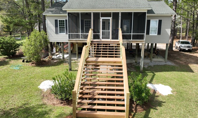 Our home features 3 bedrooms and 2 baths and is located in the Beaver Creek area of Lake Wateree. This waterfront house is ideal for a family gathering or spending quiet time "away from it all." The house is built "beach style" with concrete underneath for a game of ping pong or just sitting and relaxing.